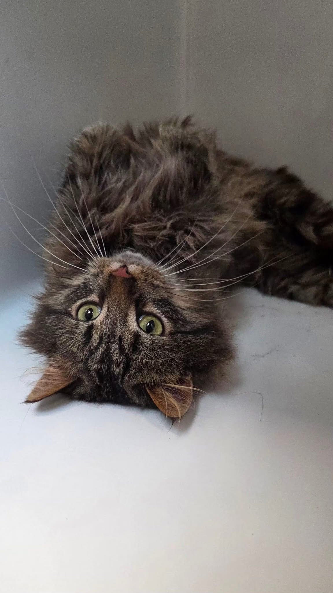 Adams est arrivé au refuge suite à une saisie : lorsque sa propriétaire est partie, il s’est retrouvé seul, entouré d’une cinquantaine d’autres chats.