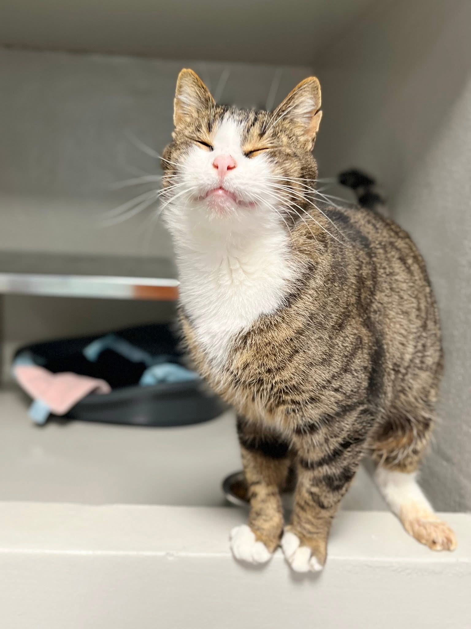 C’est un chat gentil, attachant, avec un caractère bien à lui, qui s’entend très bien avec les autres chats.