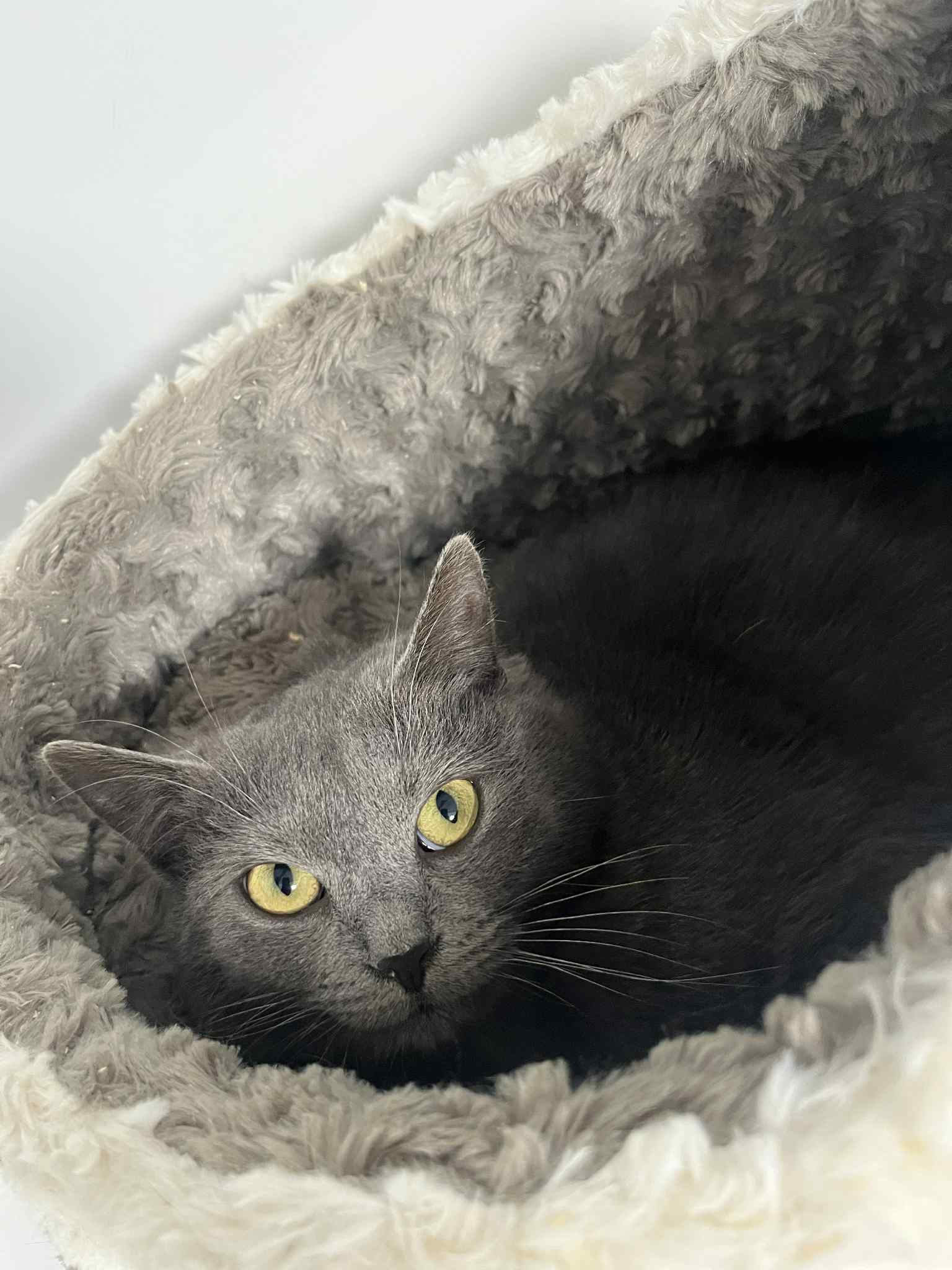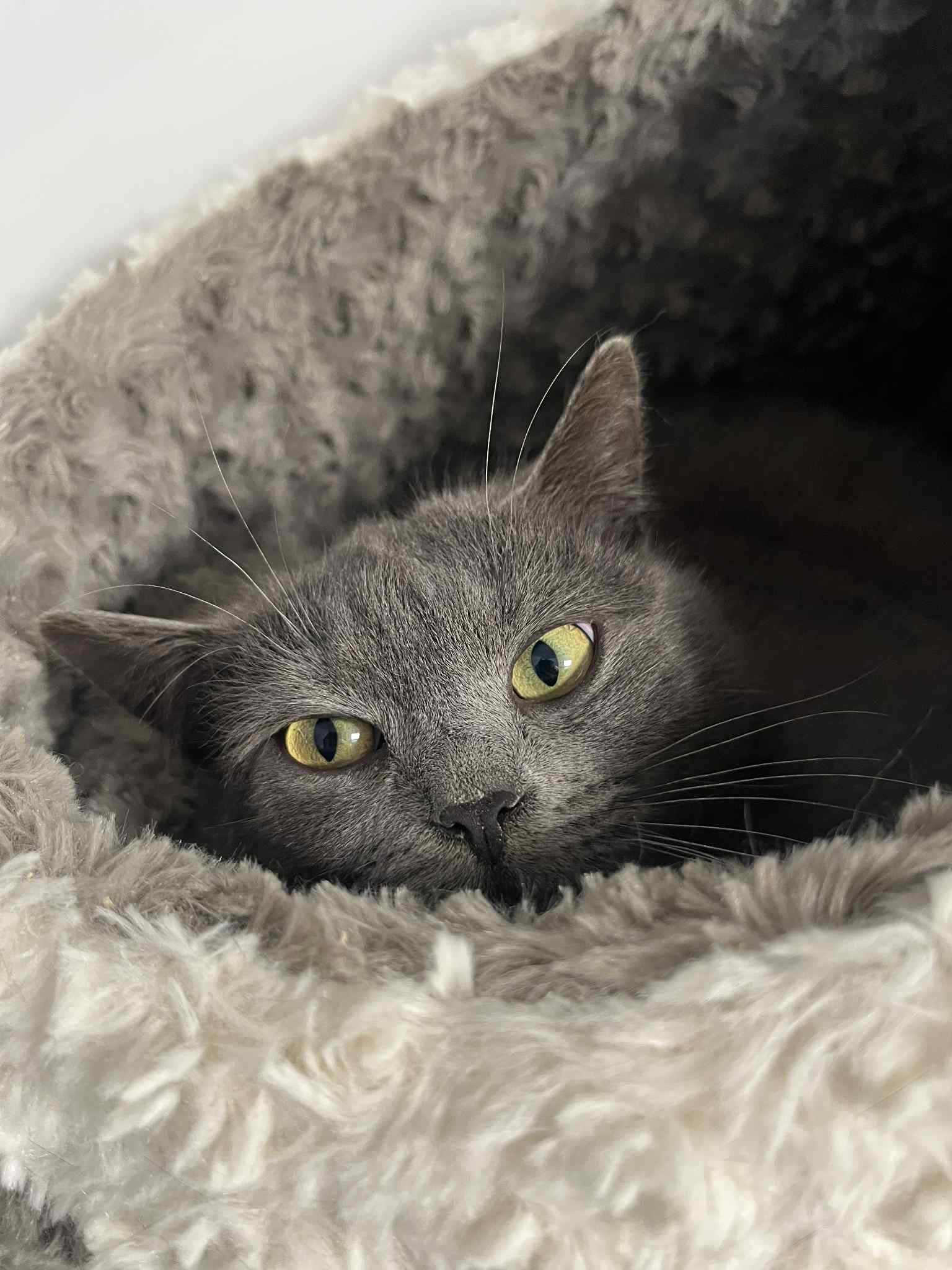 C’est une chatte peureuse, qui aura besoin de temps, de patience et de douceur pour s’adapter à un nouvel environnement.