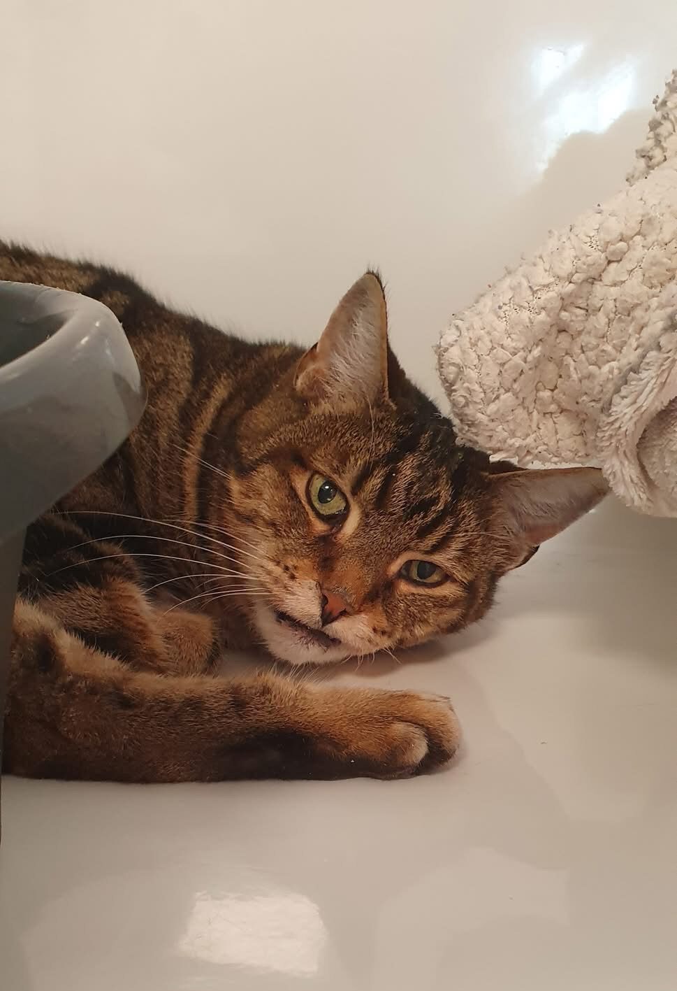 C’est un chat plutôt timide et tranquille, qui s’entend bien avec les autres chats.