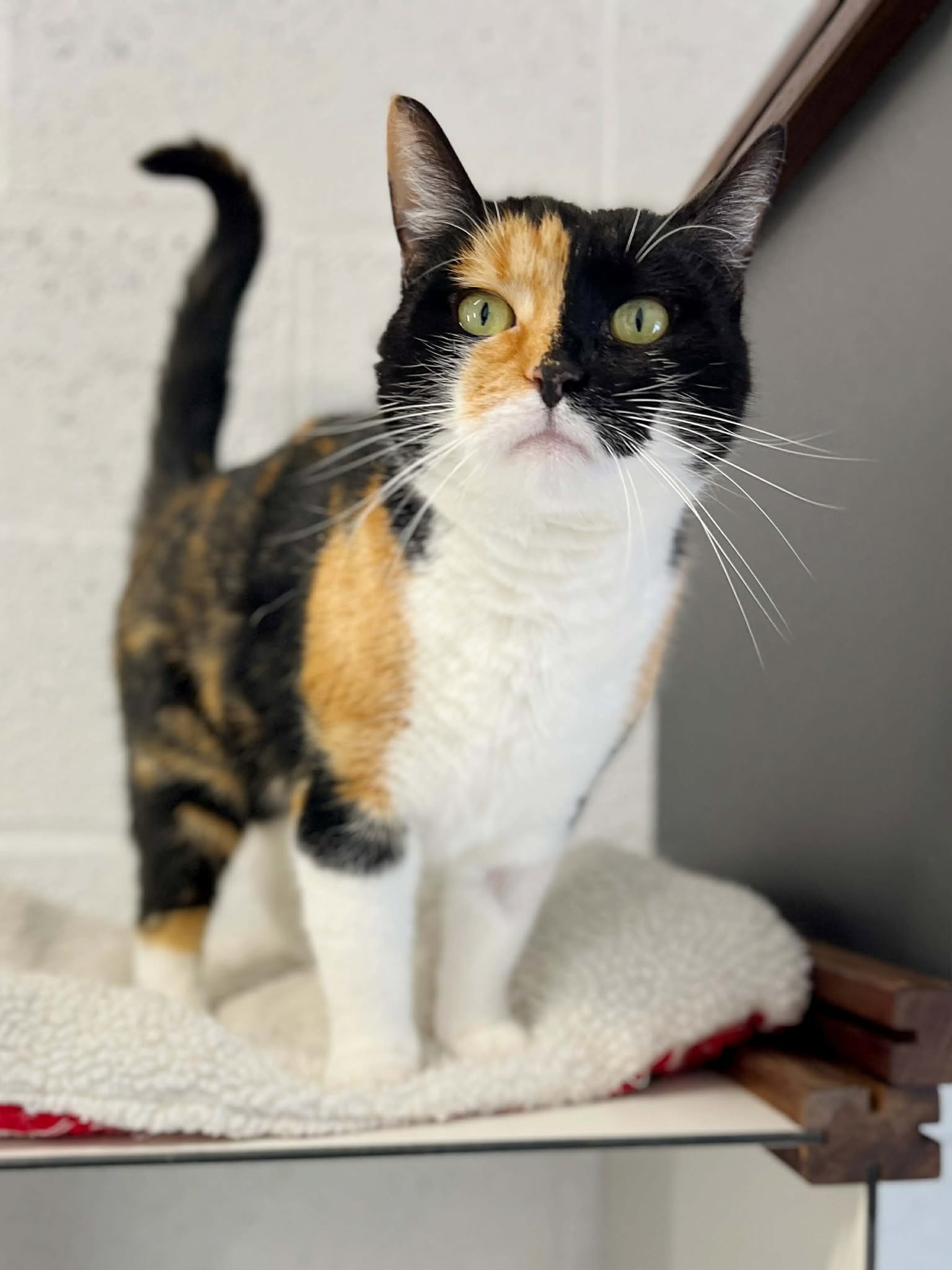 Contrairement à sa compagne, Caramel est une chatte très sociable, proche de l’humain et en demande de contact et d’attention.