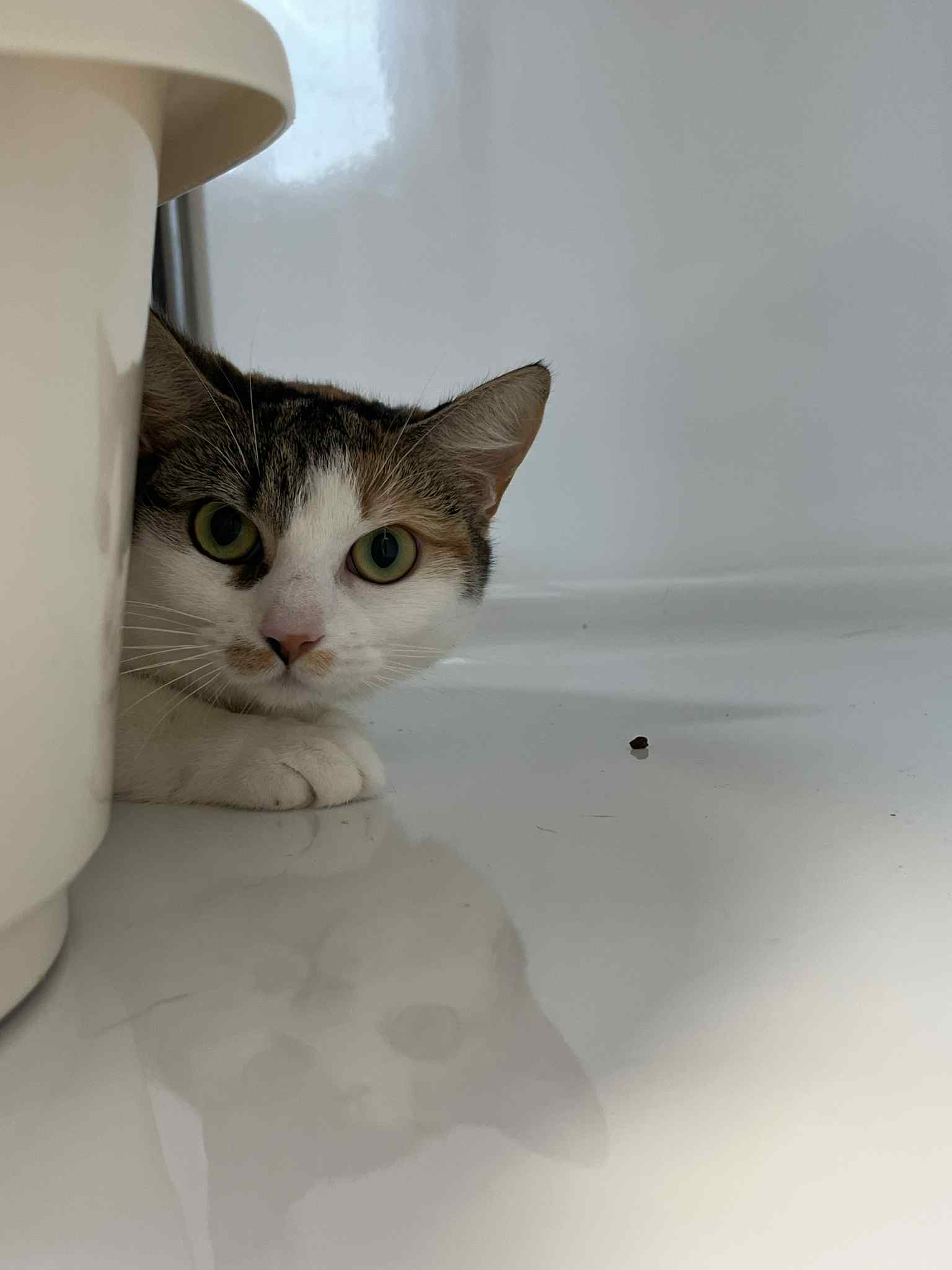 C’est une chatte peureuse, mais sociable et douce une fois en confiance, qui apprécie la présence humaine.