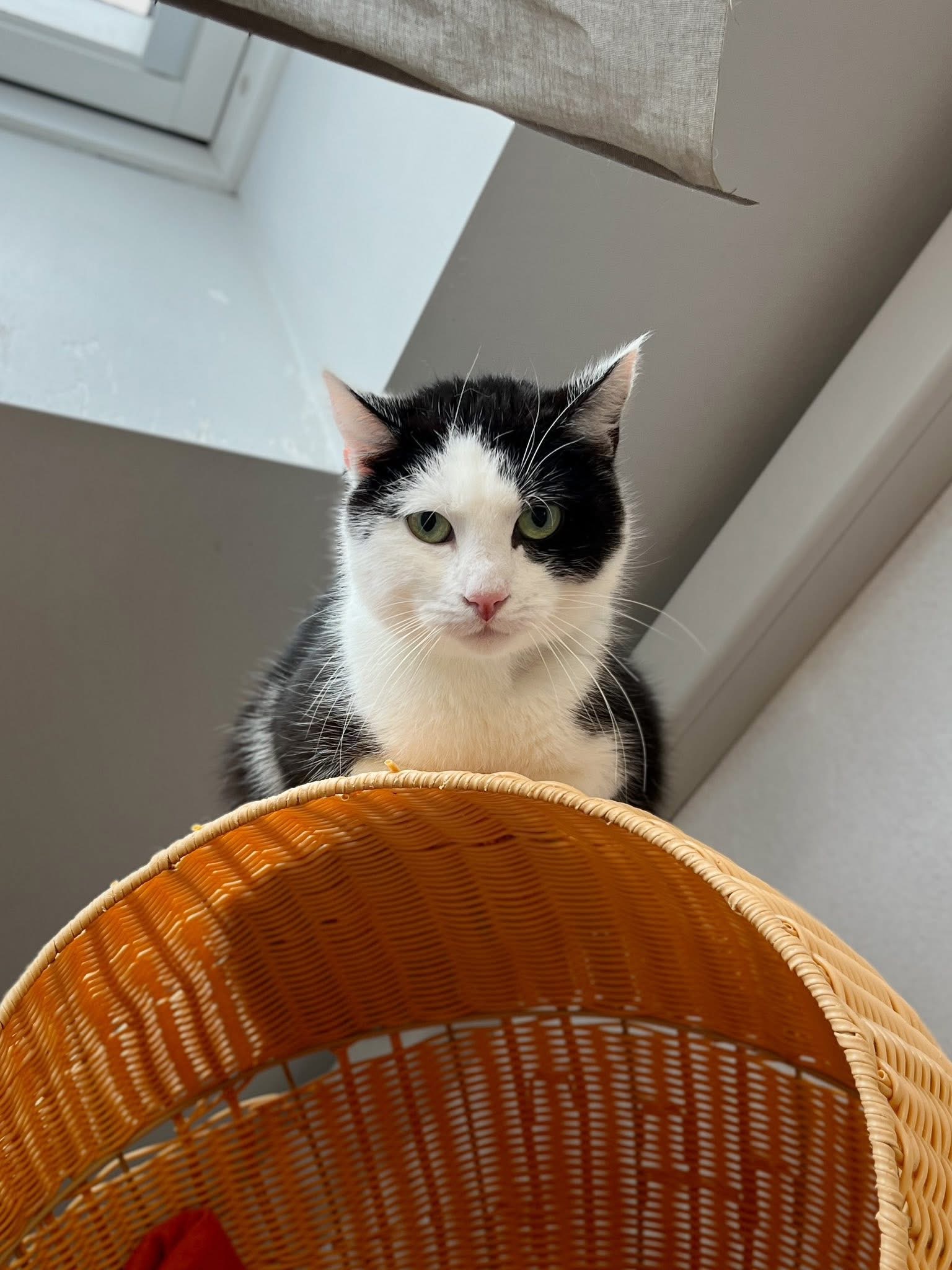 C’est une chatte timide au premier abord, mais douce et sociable une fois en confiance.