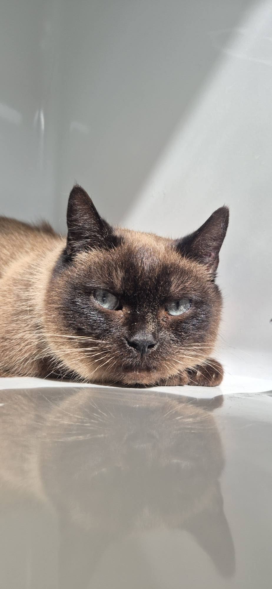 Mallorca a été prise en charge avec d’autres chats car ses propriétaires ne pouvaient plus s’en occuper.