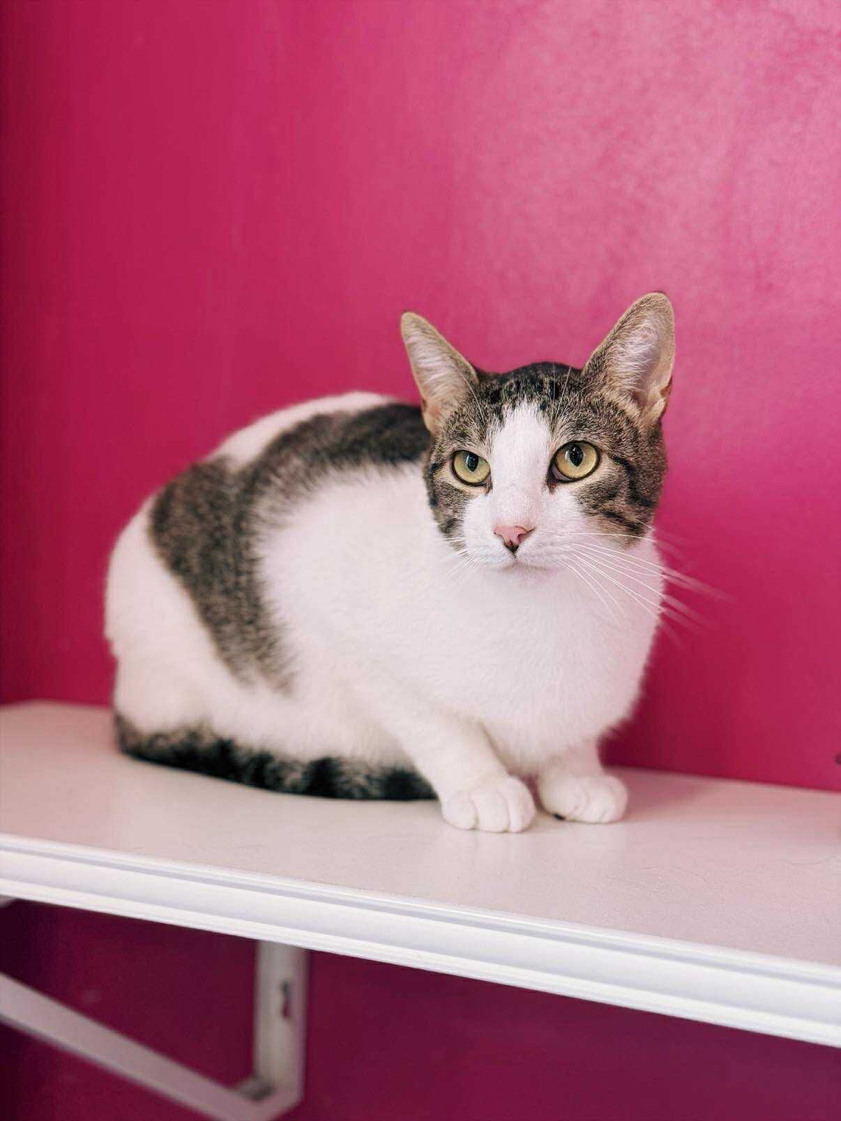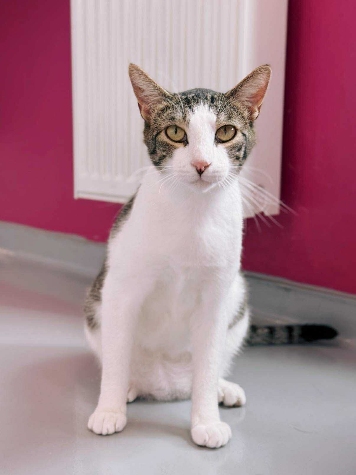 C’est un chat peureux, qui aura besoin de temps, patience et douceur pour se sentir en confiance dans un nouvel environnement.