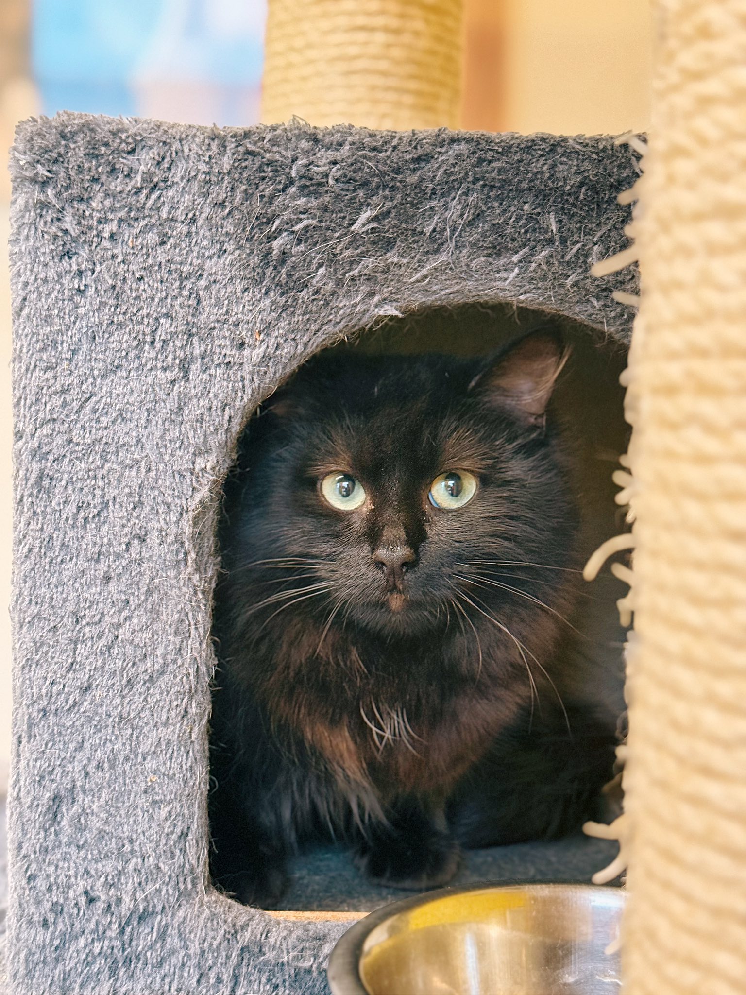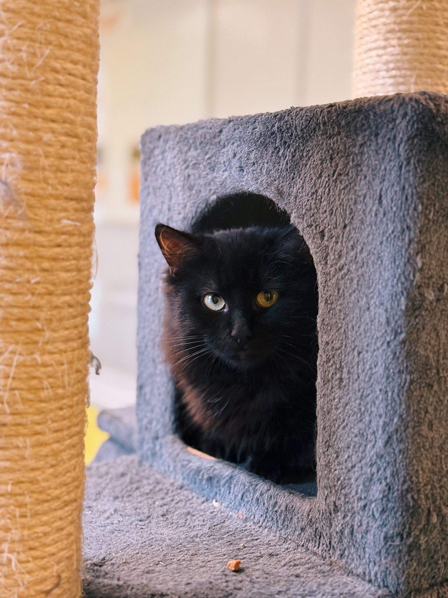 Noireau a vécu errant sur un terrain, une vie qui l’a rendu craintif et réservé.