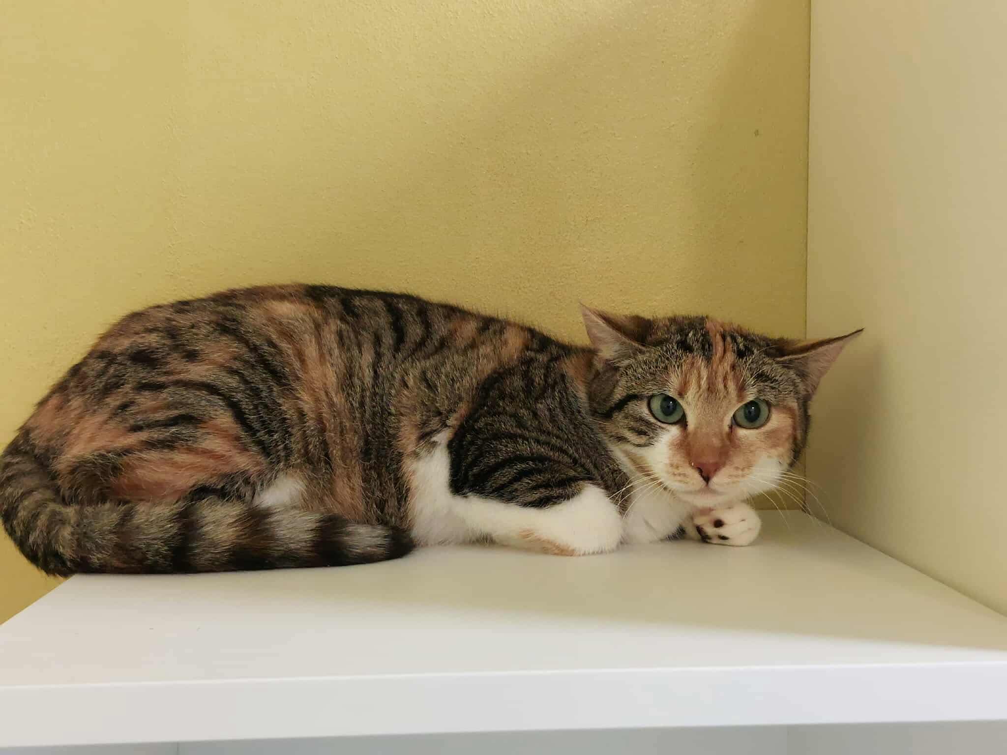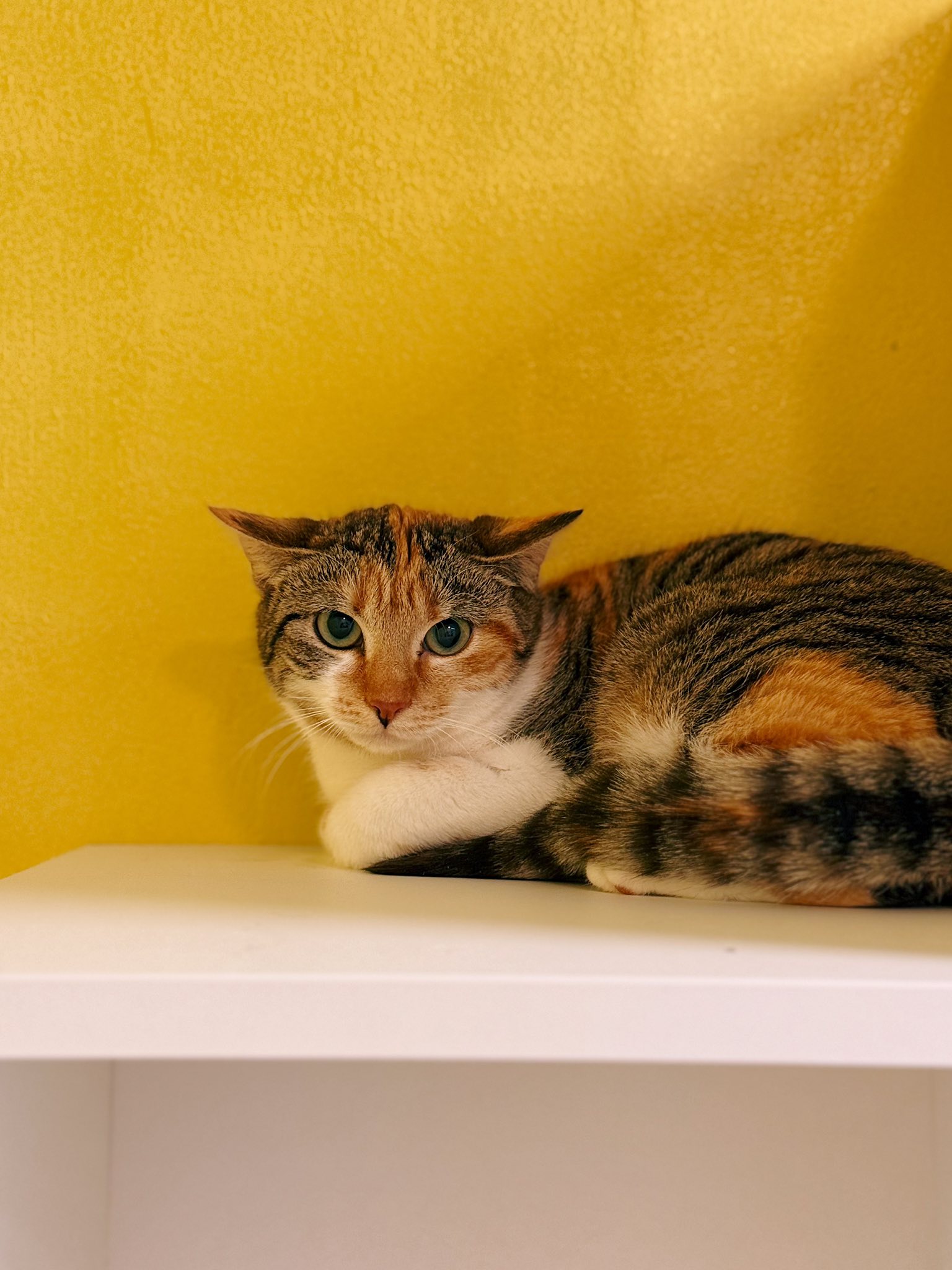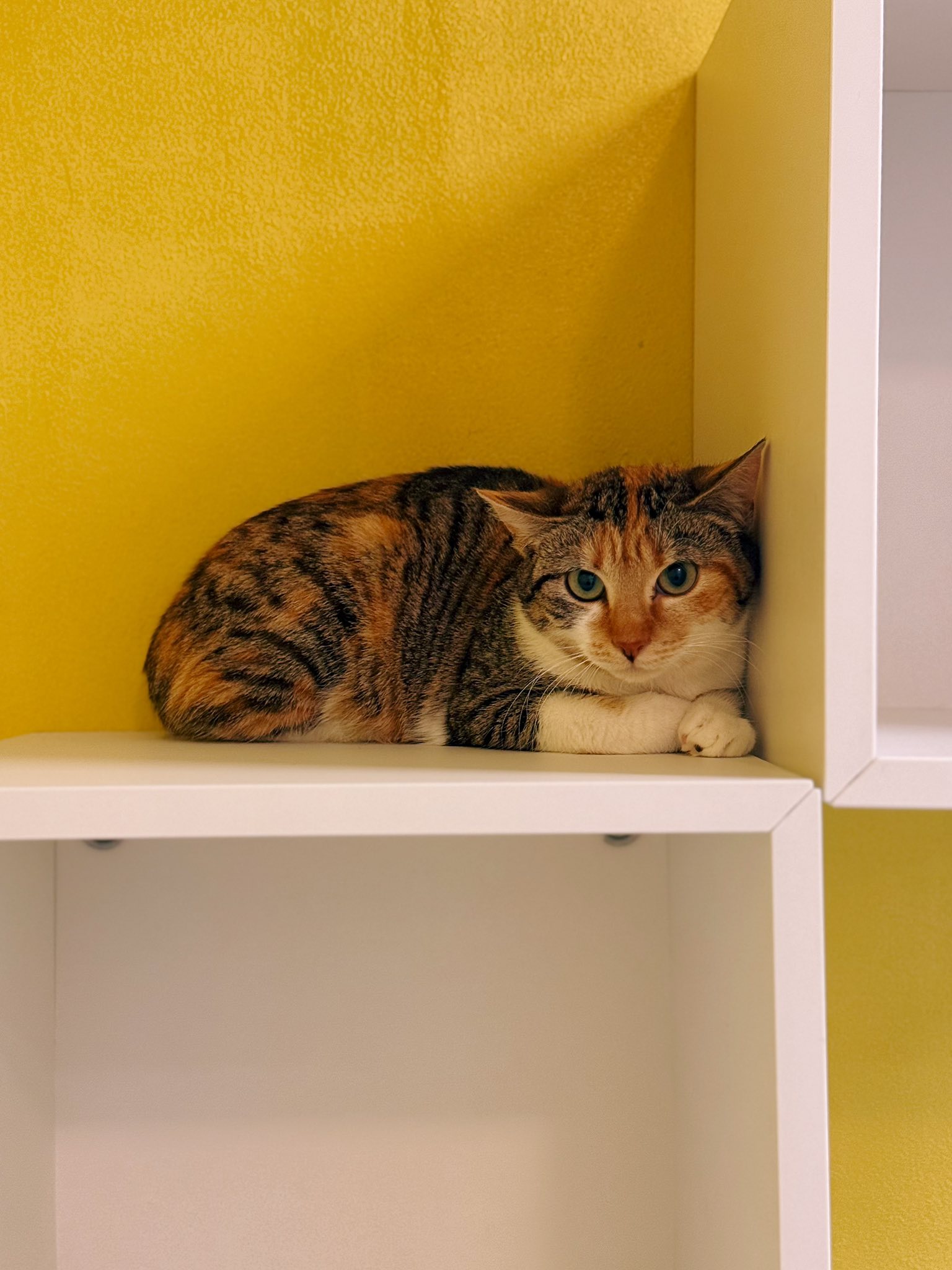 C’est une chatte très timide, qui aura besoin de temps, patience et douceur pour se sentir en confiance et s’épanouir.