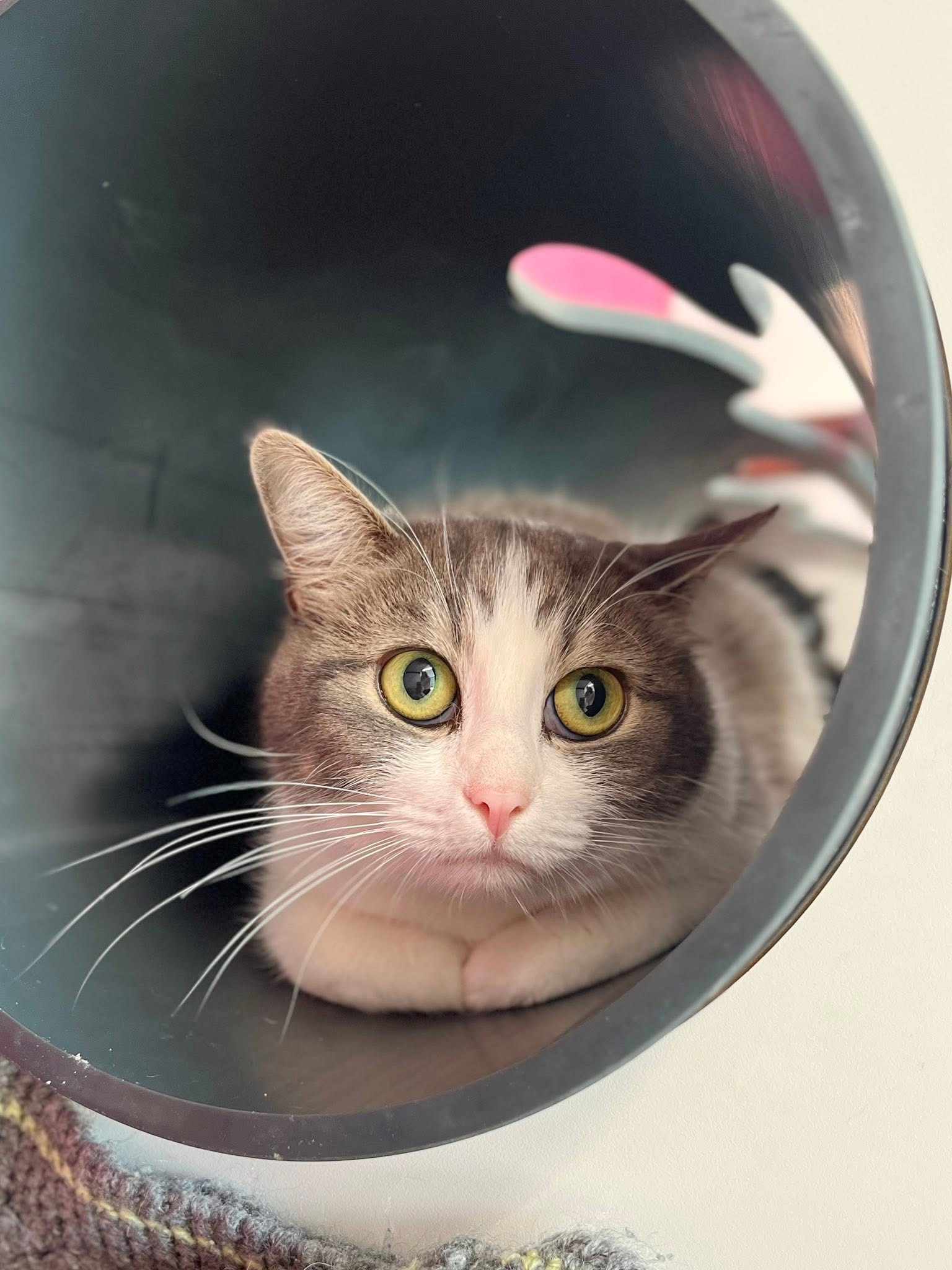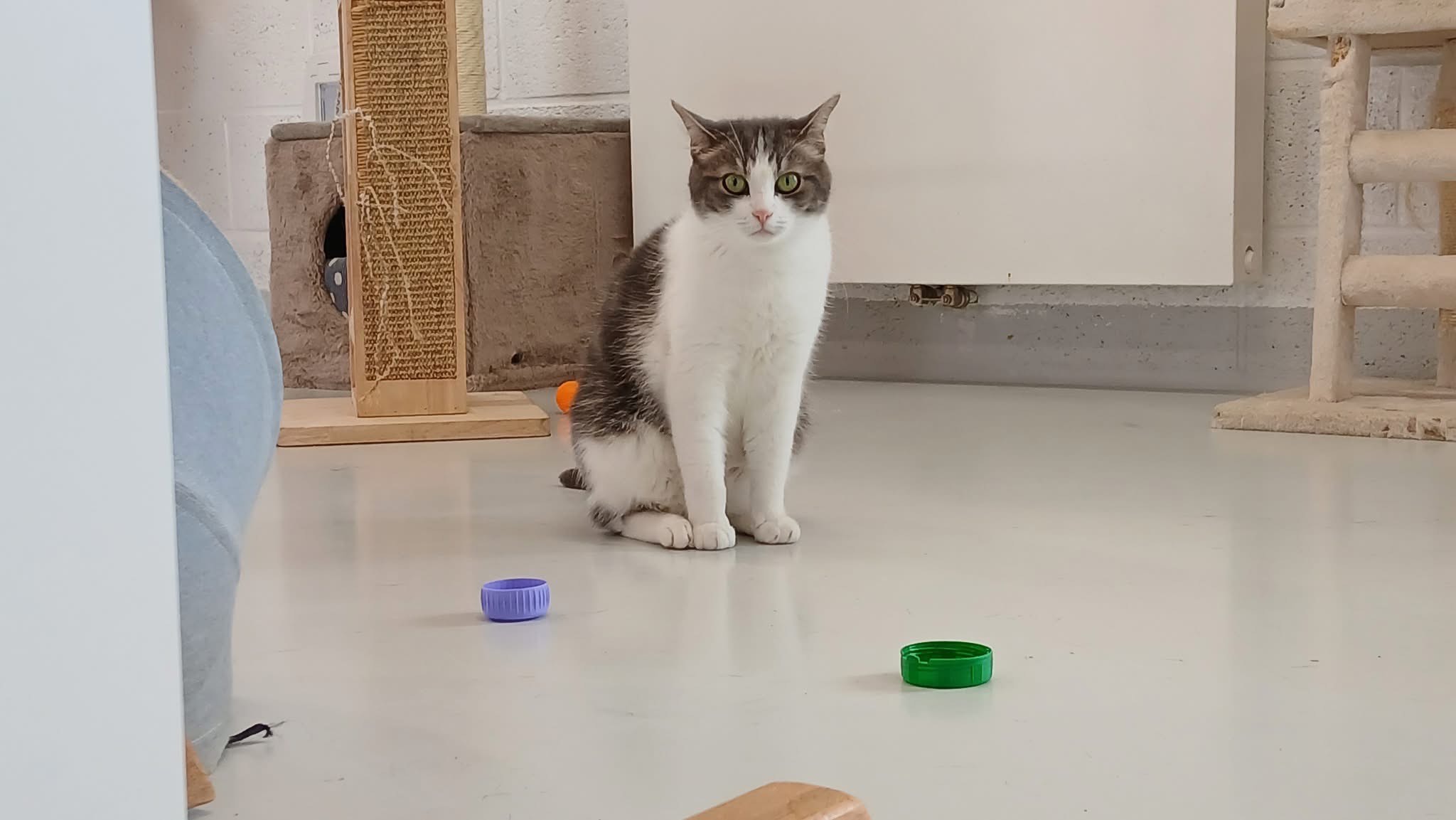 La présence d’un autre chat sociable pourrait l’aider à se sentir plus en confiance et à prendre exemple sur lui pour interagir positivement avec les humains. Patience et persévérance seront essentielles pour gagner sa confiance…