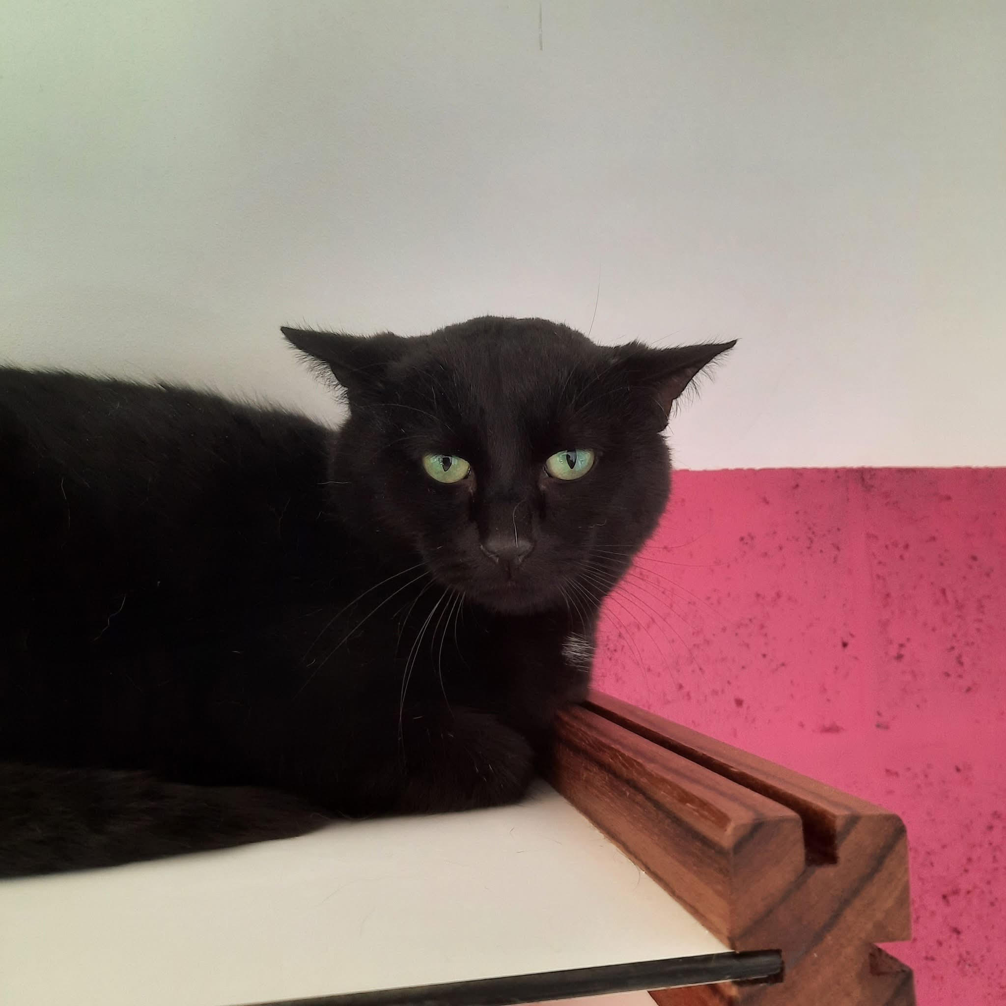 C’est un chat timide qui aura besoin de temps avant de faire confiance. Nous n’avons malheureusement aucune info sur son passé.