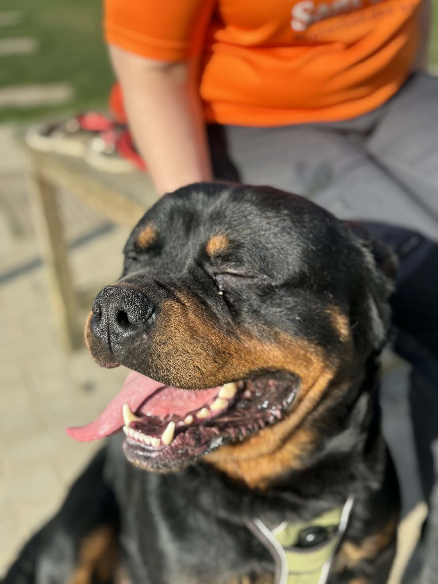 Concernant les promenades, Aslan sortait occasionnellement en balade, il apprécie prendre le temps d’explorer son environnement mais a quand même de la force. Il peut se montrer réactif face à certains stimuli. Par le passé, il réagissait notamment envers les animaux de ferme, comme les chèvres. Au refuge, il peut également réagir face à certains congénères ou aux voitures. Néanmoins, il montre déjà de belles capacités d’apprentissage : le simple fait de lui laisser observer calmement son environnement l’aide beaucoup, et avec du travail, il pourrait progresser rapidement. Il aura donc besoin de temps, de patience et de bienveillance pour travailler la gestion de ses émotions.