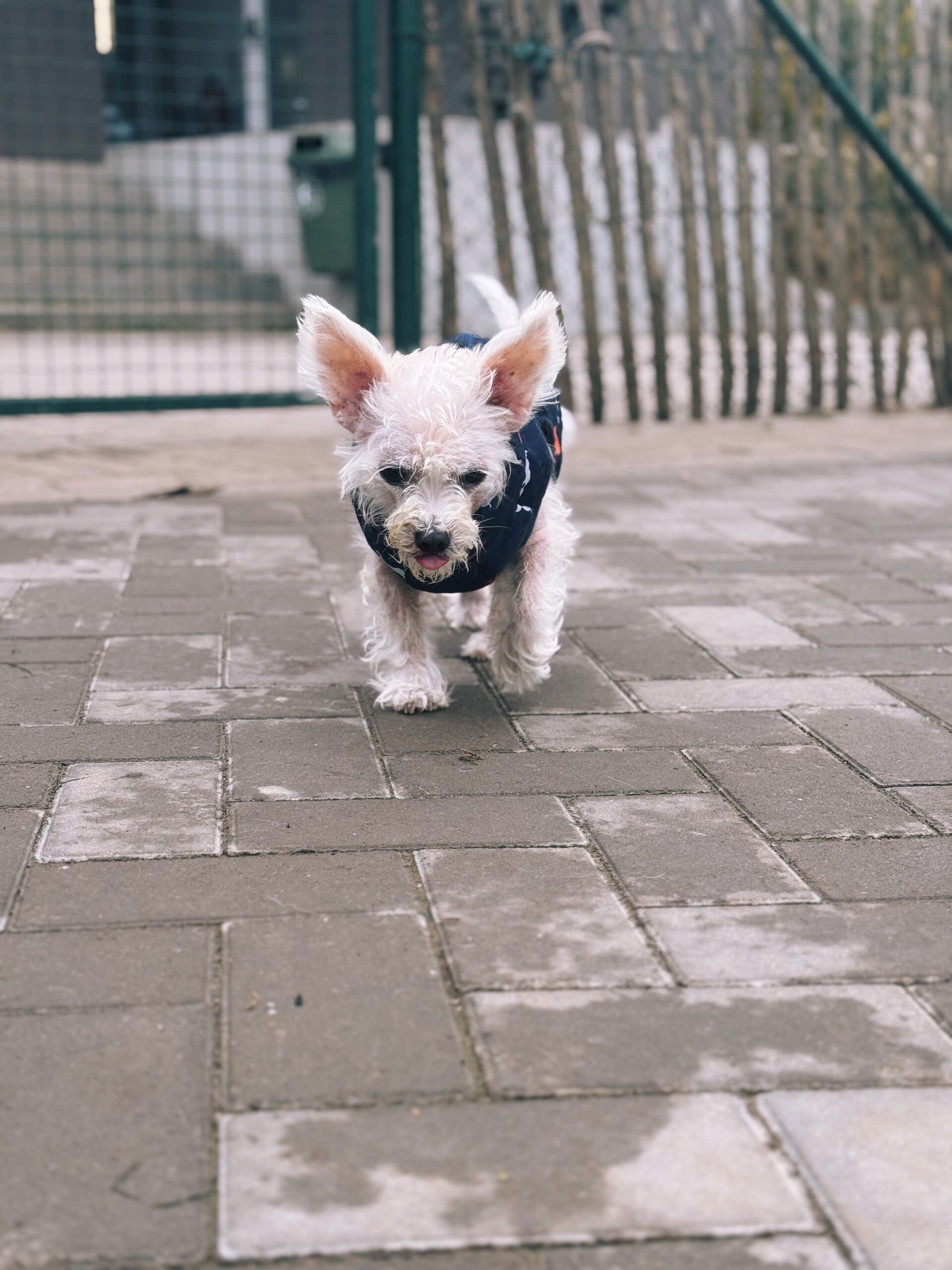 D’après ses anciens propriétaires, c’est une petite chienne facile à vivre : propre, calme, et attentive en promenade. Elle ne détruit pas et sait rester seule.