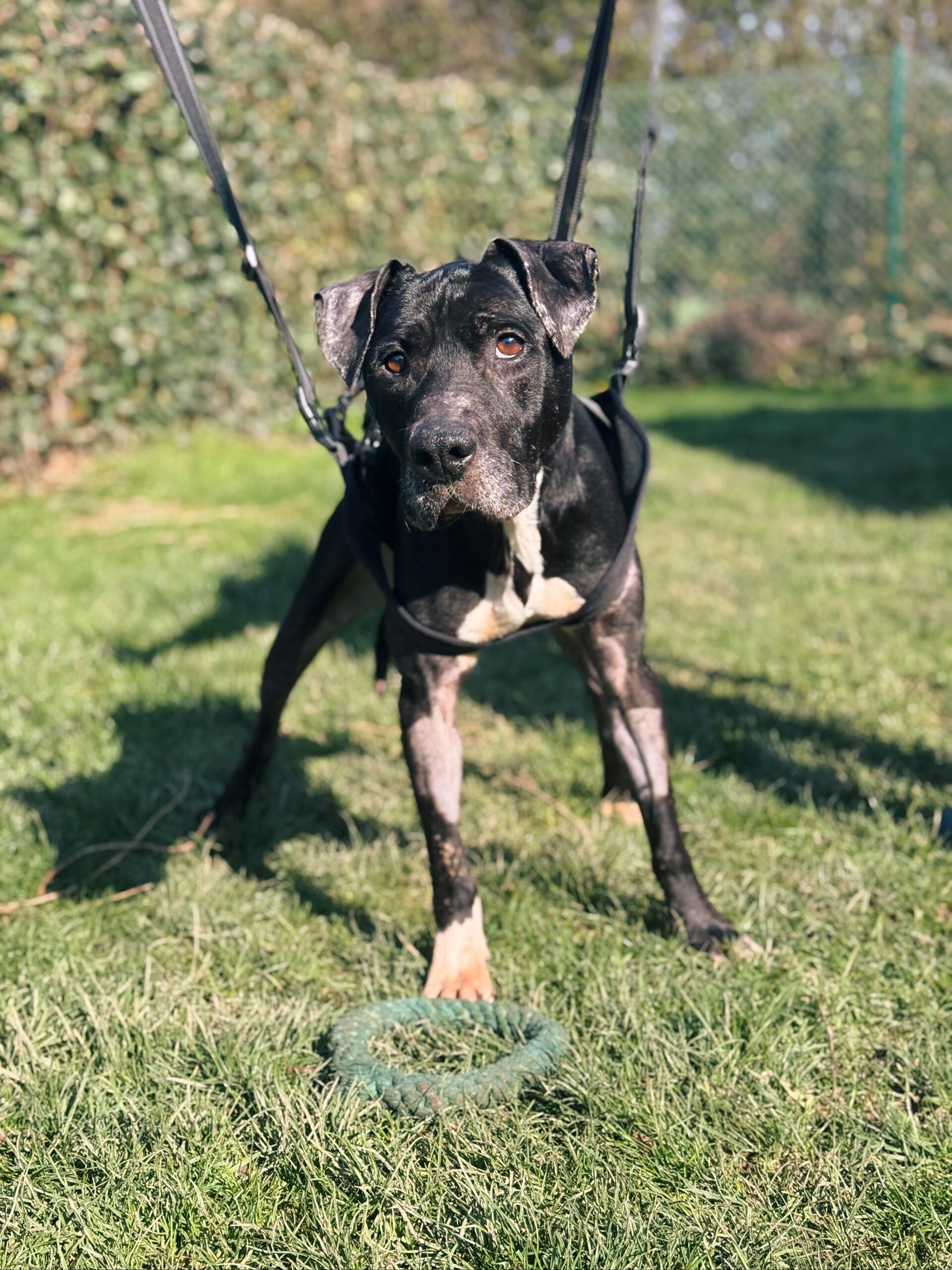 En promenade, il peut parfois se montrer un peu réactif lorsqu’il est inquiet, mais cela reste gérable avec une personne attentive. Concernant les ententes, Lucky n’est pas compatible avec les autres chiens et ne connaît pas les chats. Nous éviterons également un placement avec de jeunes enfants, car ses mouvements involontaires pourraient provoquer des interactions maladroites.