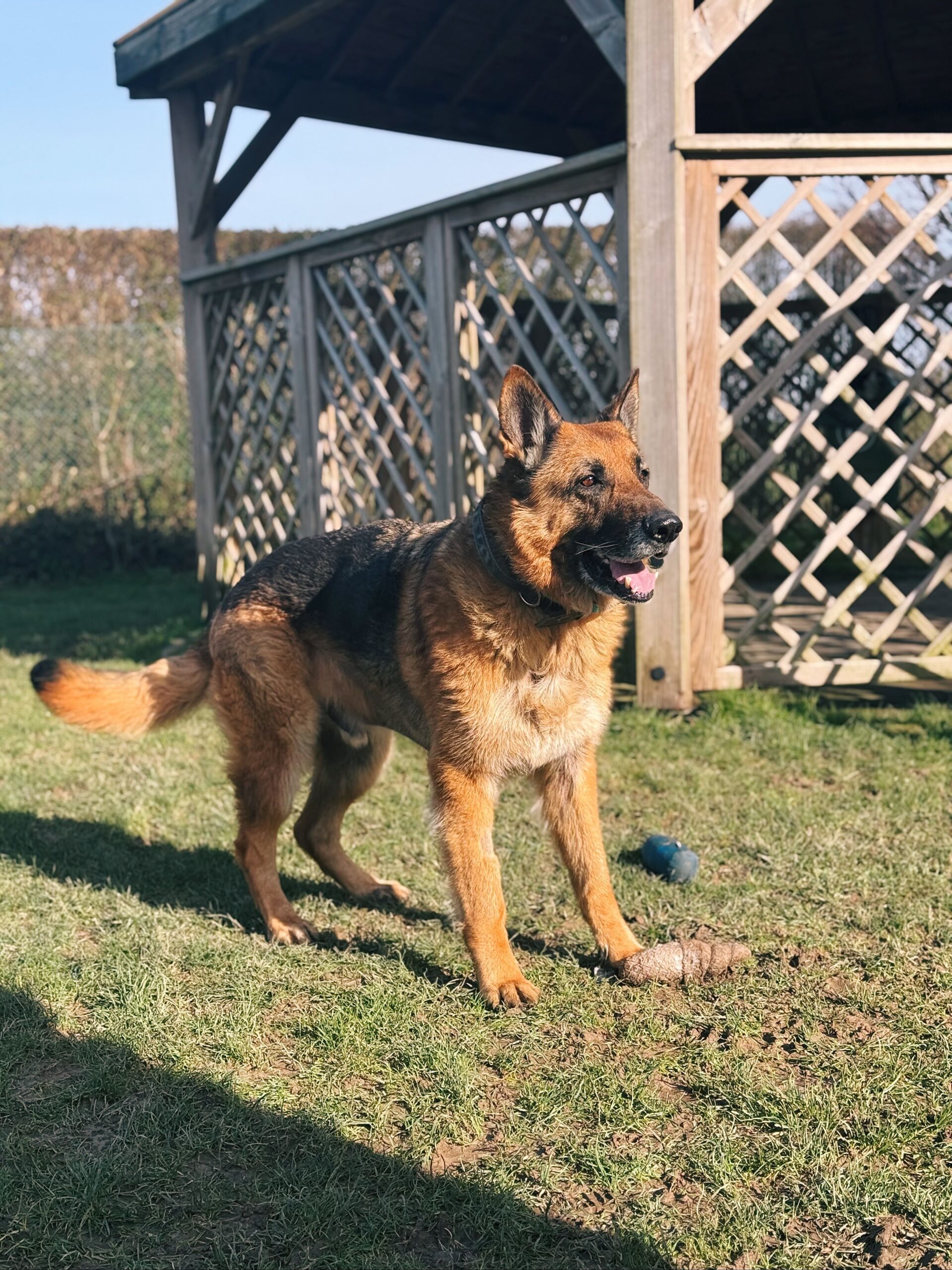 Sam est un chien très puissant, qui n’a pas l’habitude de vivre pleinement en maison. Même s’il rentrait régulièrement, il demandait rapidement à ressortir et aurait déjà abîmé un contour de porte pour accéder à l’extérieur. L’apprentissage de la vie en intérieur sera donc à poursuivre avec patience et cohérence.