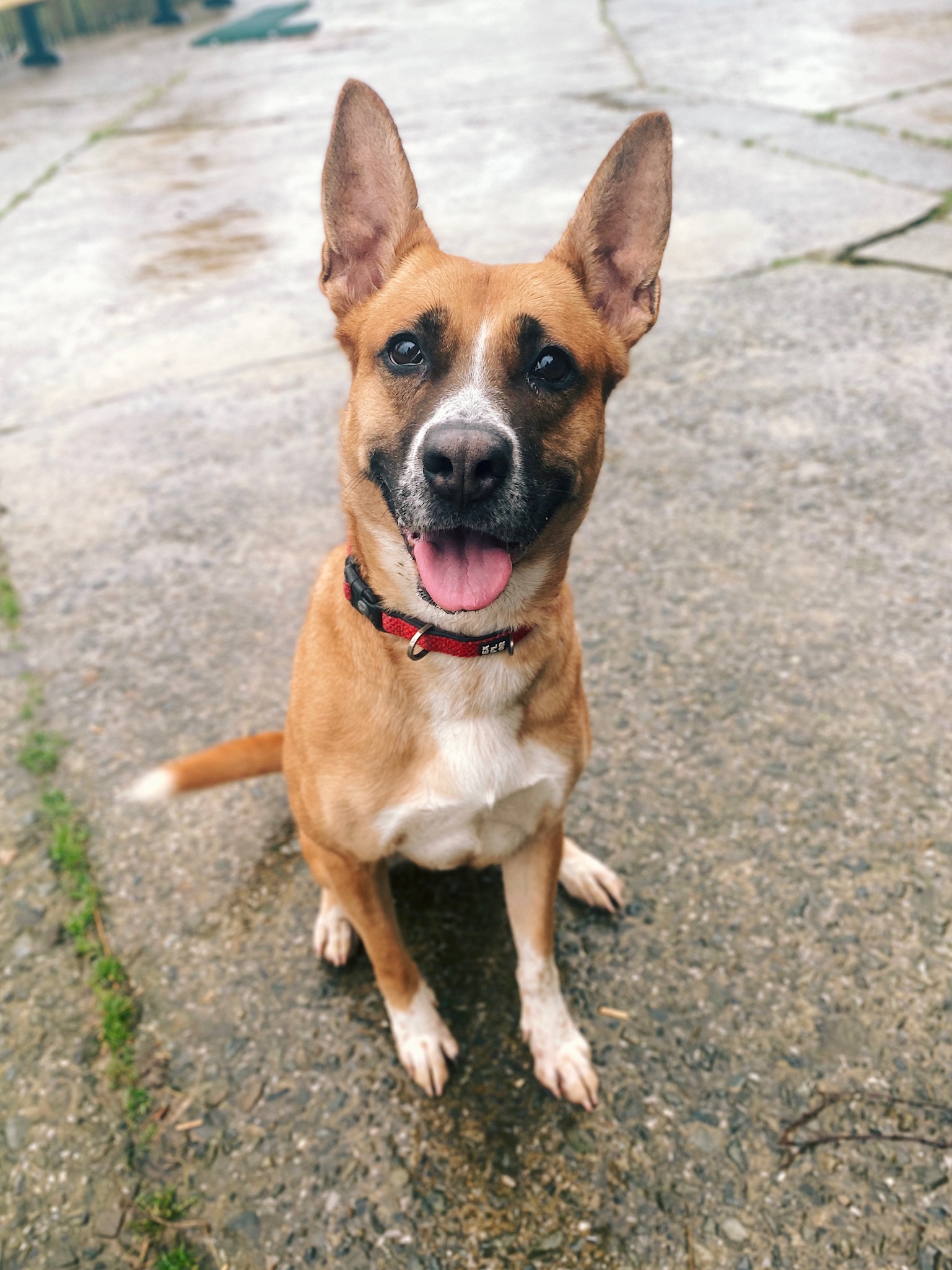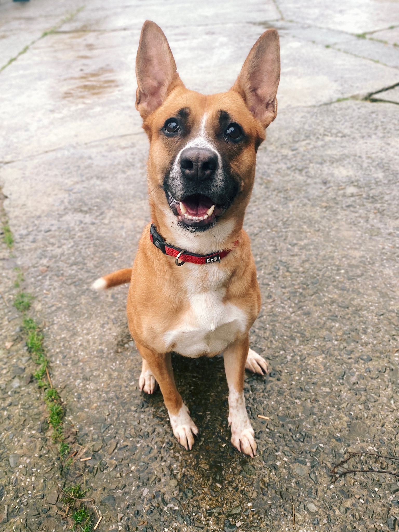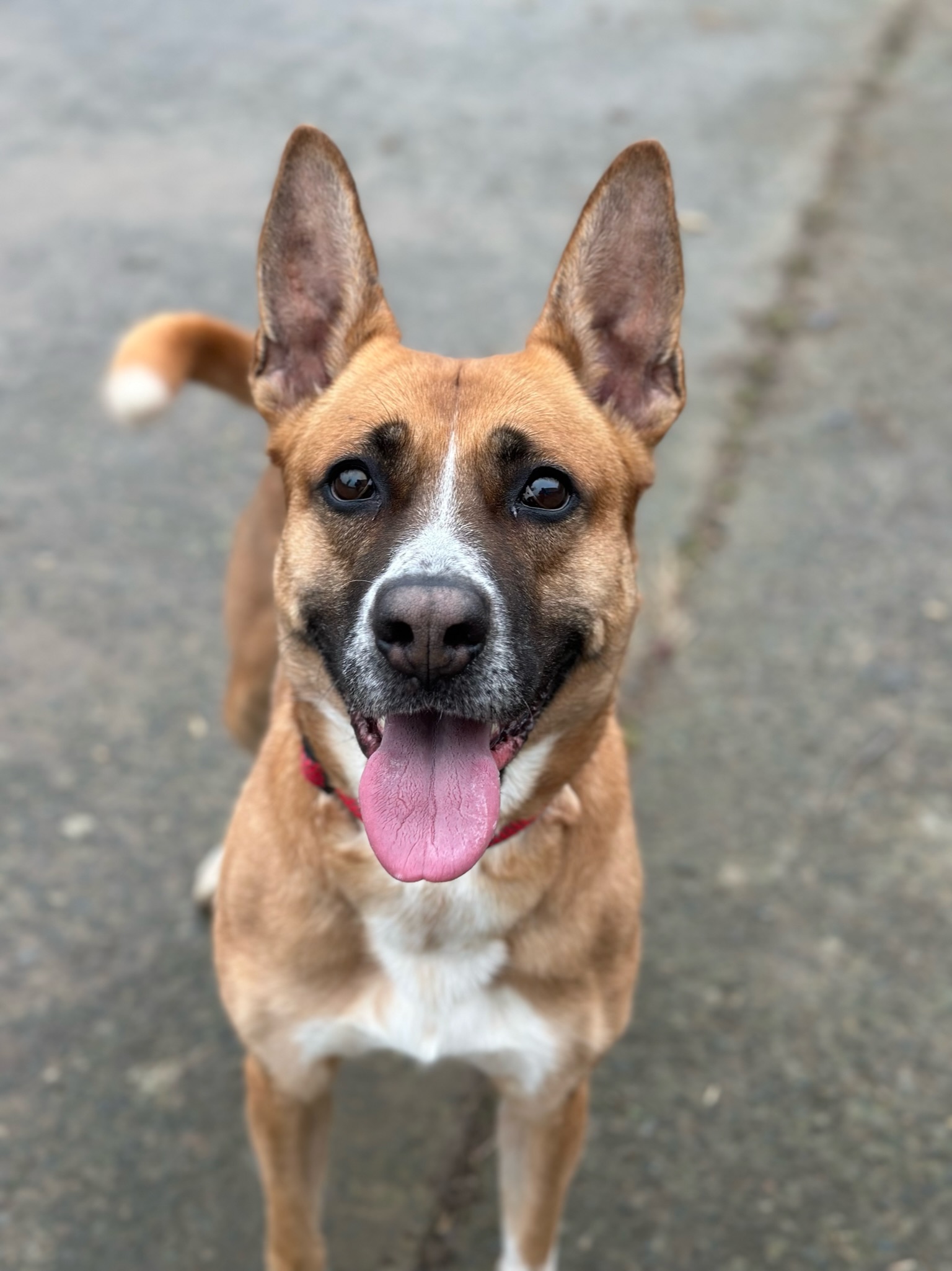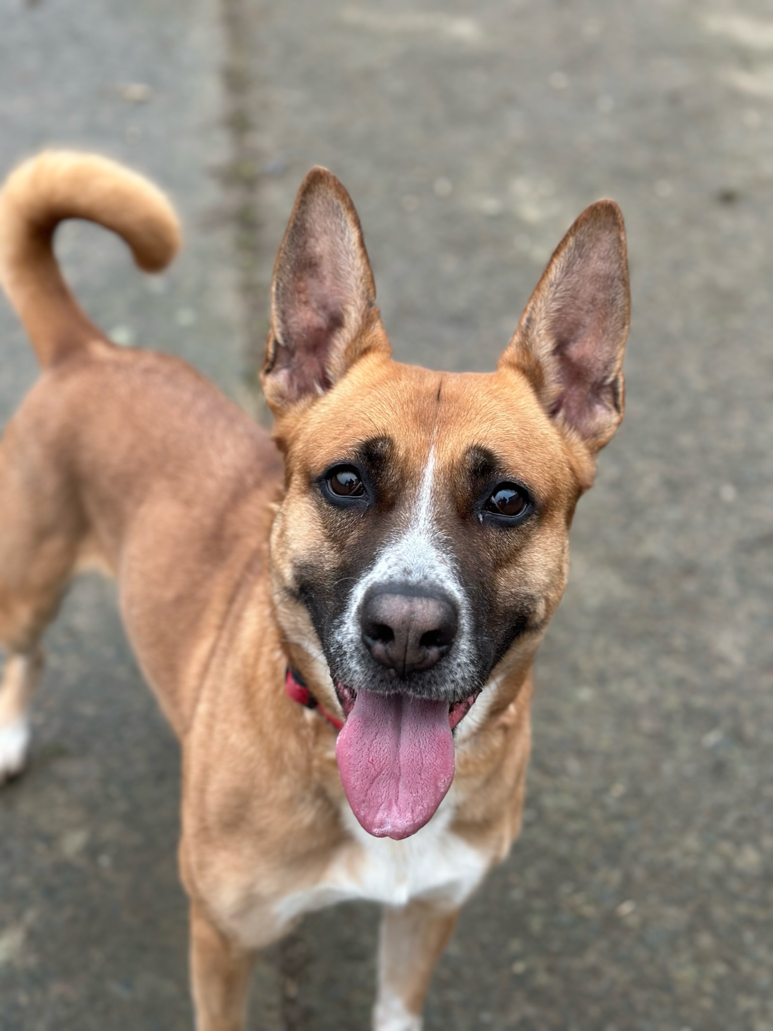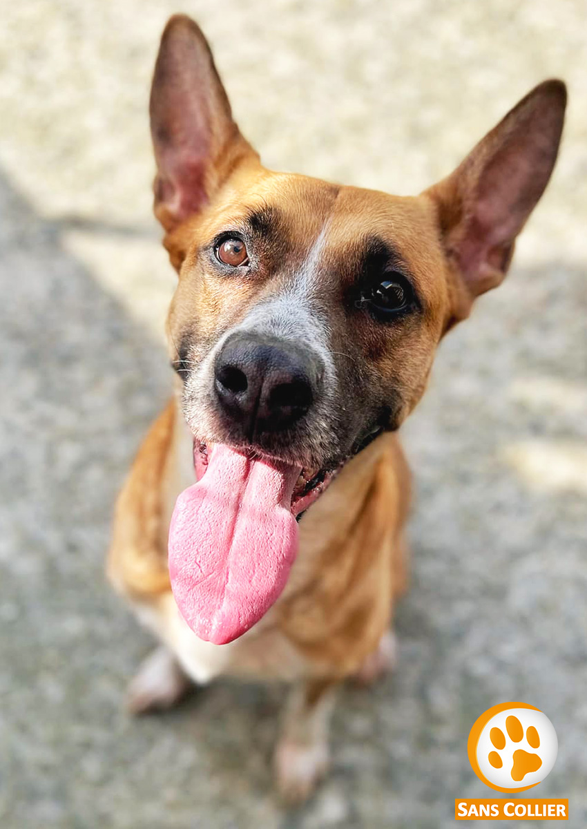 Tina est arrivée chez nous suite à un appel à l’aide lancé sur Facebook. Un jeune homme laissé pour compte par sa mère n’arrivait plus à s’occuper du chien de la famille. La jeune chienne débordante d’énergie ne sortait plus du jardin. Tina est alors arrivée au refuge amaigrie. A