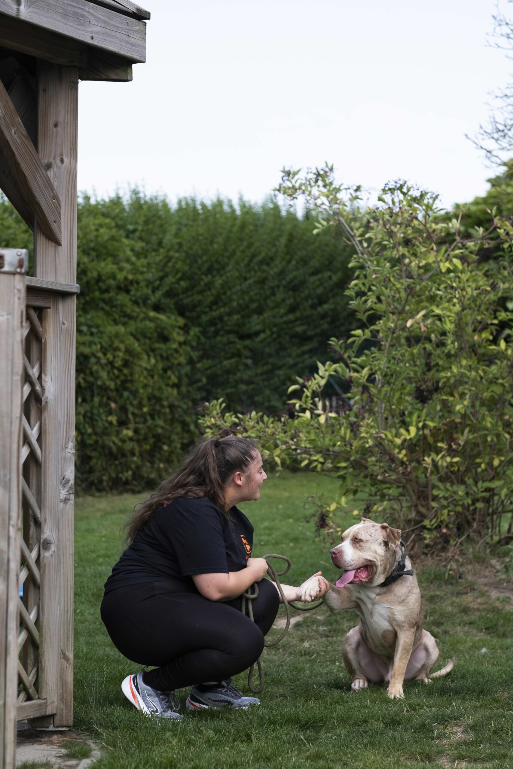 C’est un jeune chien plein d’énergie et de force ! Bien qu’il soit un peu brusque dans son jeu, il se révèle très affectueux et aime les câlins. Il a d’ailleurs vécu avec des enfants en bas âge.